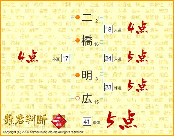 二橋明広さんの総運は41画の5点!