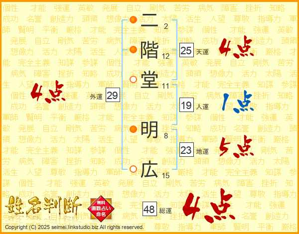 二階堂明広さんの総運は48画の4点!