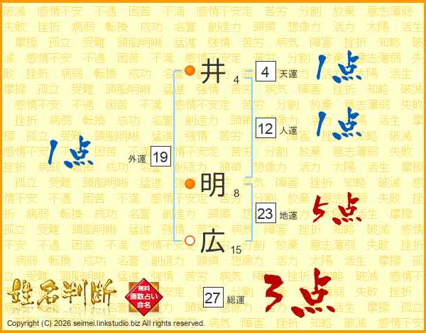 井(4画) 明(8画)広(15画)