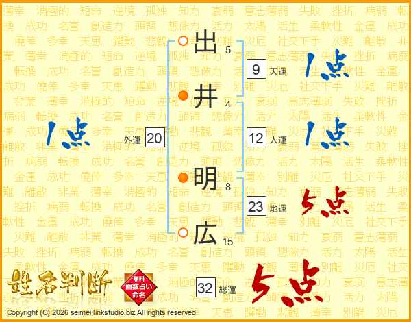 出井明広さんの総運は32画の5点!