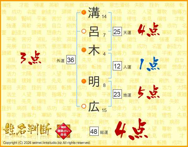 溝(14画)呂(7画)木(4画) 明(8画)広(15画)