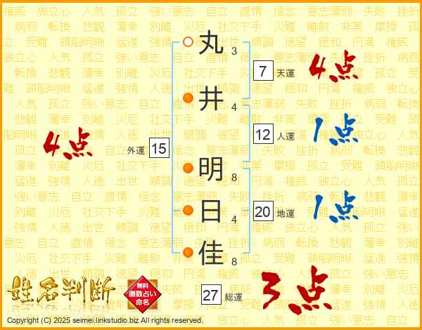 丸(3画)井(4画) 明(8画)日(4画)佳(8画)