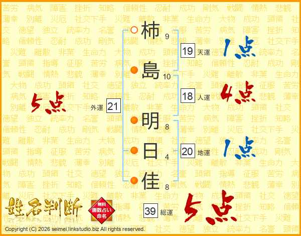 柿島明日佳さんの総運は39画の5点!