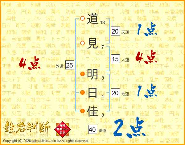 道見明日佳さんの総運は40画の2点!