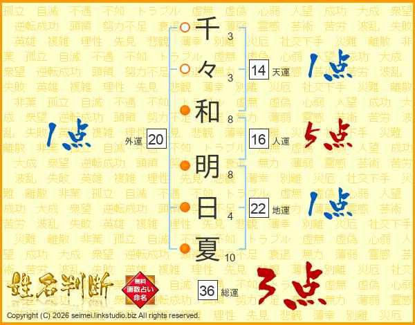 千(3画)々(3画)和(8画) 明(8画)日(4画)夏(10画)