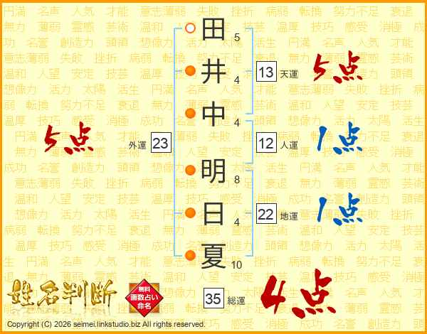 田井中明日夏さんの総運は35画の4点!