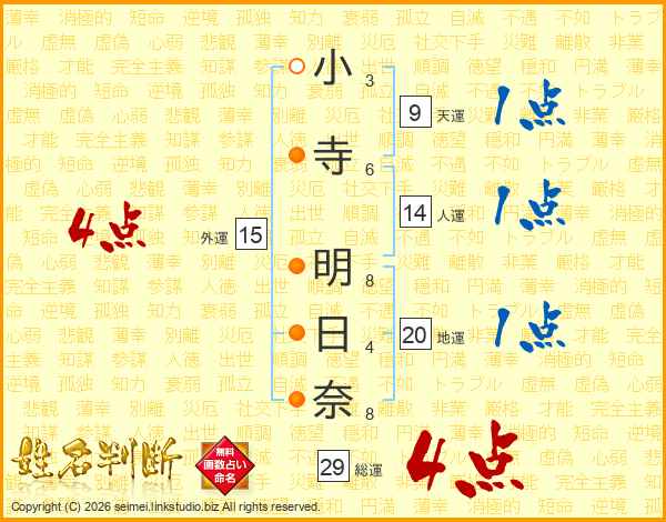 小寺明日奈さんの総運は29画の4点!