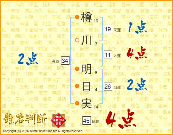 樽川明日実さんの総運は45画の4点!