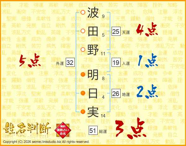 波田野明日実さんの地運は26画の2点!