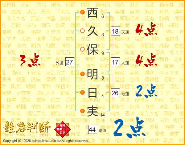 西久保明日実さんの総運は44画の2点!