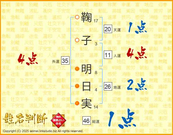 鞠子明日実さんの総運は46画の1点!