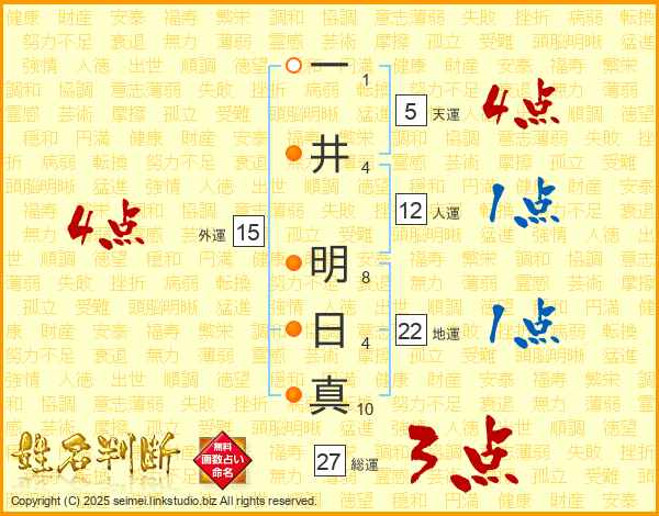 一(1画)井(4画) 明(8画)日(4画)真(10画)