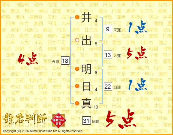 井出明日真さんの総運は31画の5点!