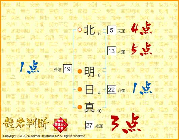 北明日真さんの総運は27画の3点!