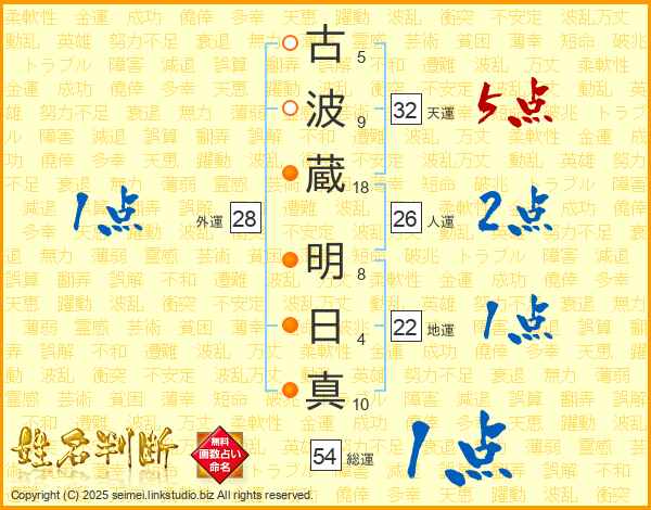 古(5画)波(9画)蔵(18画) 明(8画)日(4画)真(10画)