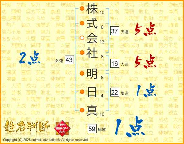 株(10画)式(6画)会(13画)社(8画) 明(8画)日(4画)真(10画)