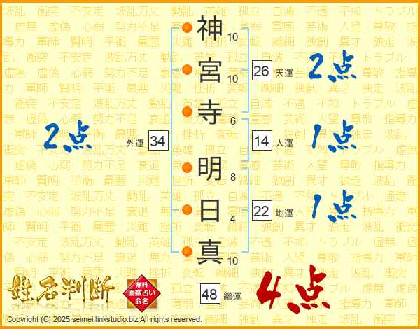 神宮寺明日真さんの外運は34画の2点!