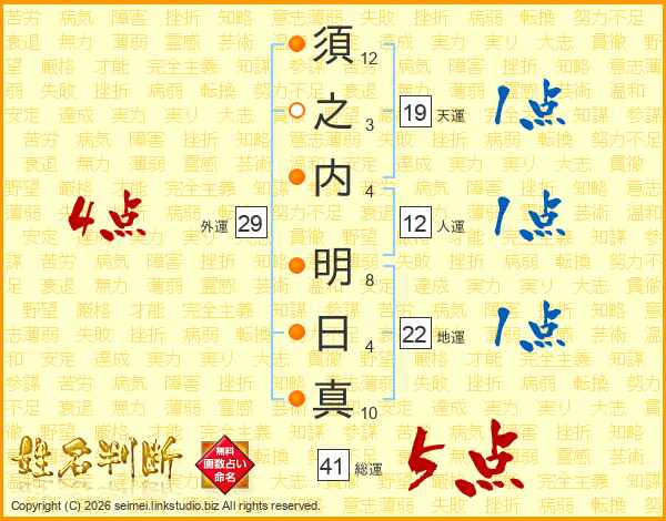 須(12画)之(3画)内(4画) 明(8画)日(4画)真(10画)
