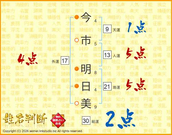 今市明日美さんの総運は30画の2点!