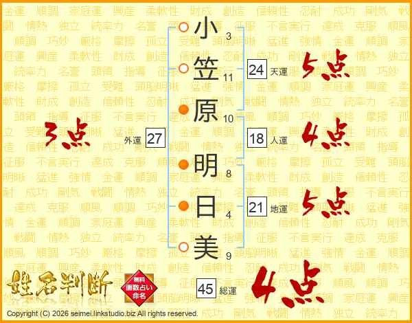 小笠原明日美さんの総運は45画の4点!