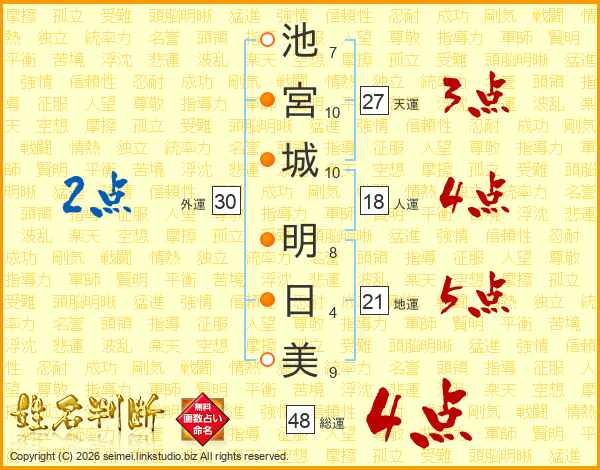池宮城明日美さんの総運は48画の4点!