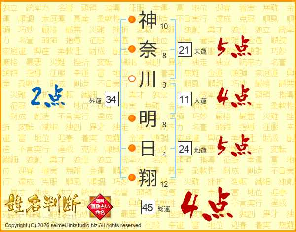 神奈川明日翔さんの総運は45画の4点!