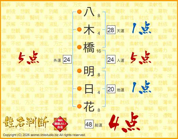 八木橋明日花さんの外運は24画の5点!