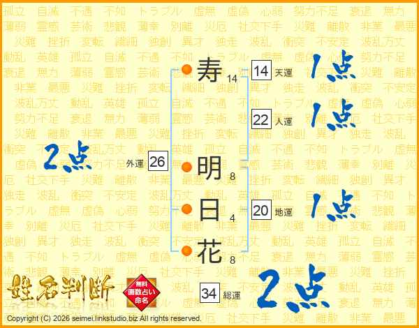 寿明日花さんの外運は26画の2点!