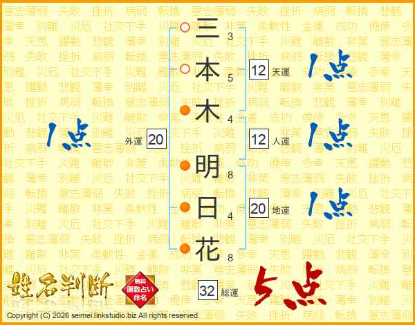 三本木明日花さんの総運は32画の5点!