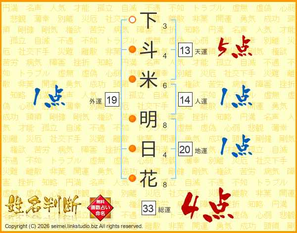 下斗米明日花さんの総運は33画の4点!