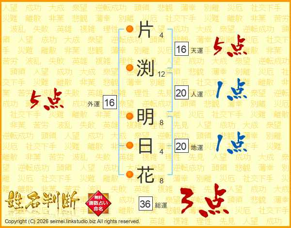 片(4画)渕(12画) 明(8画)日(4画)花(8画)