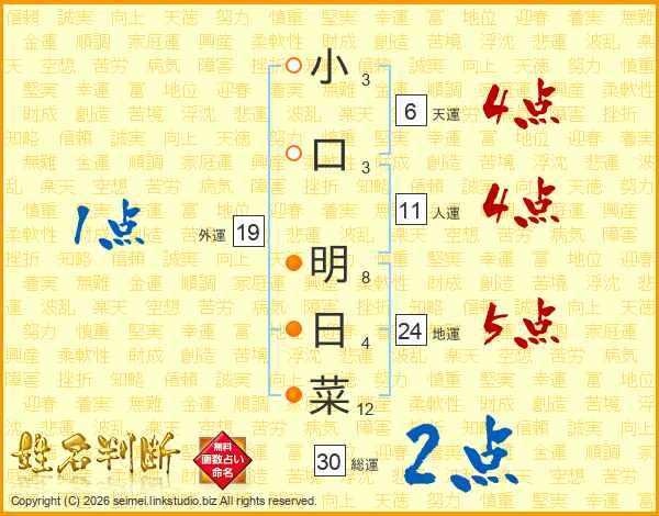 小口明日菜さんの人運は11画の4点!