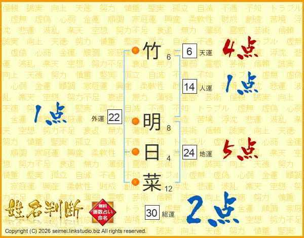 竹明日菜さんの総運は30画の2点!