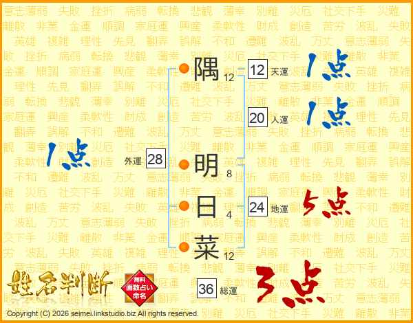 隅明日菜さんの天運は12画の1点!