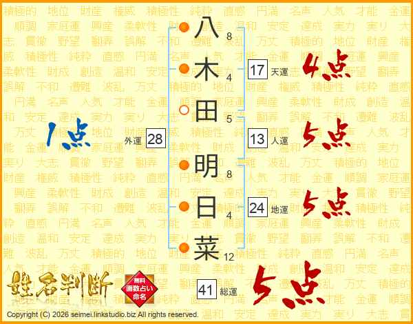 八木田明日菜さんの総運は41画の5点!