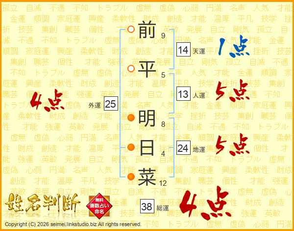 前平明日菜さんの総運は38画の4点!