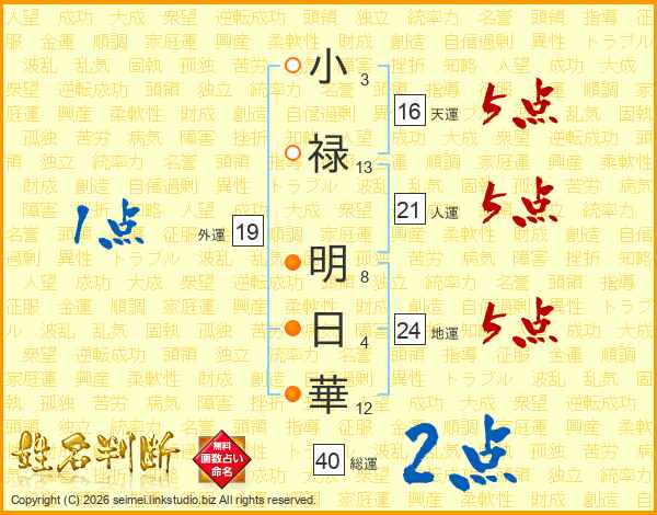 小禄明日華さんの地運は24画の5点!