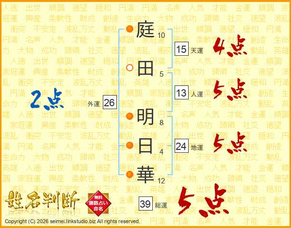 庭田明日華さんの総運は39画の5点!