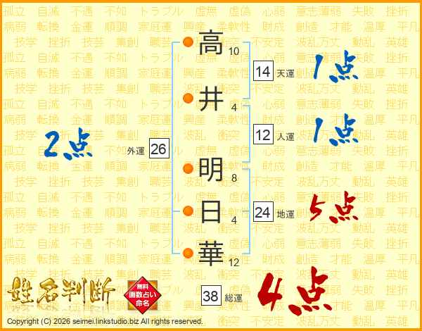 高井明日華さんの総運は38画の4点!