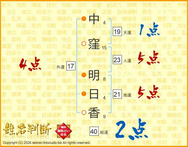 中窪明日香さんの天運は19画の1点!