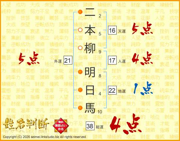 二本柳明日馬さんの総運は38画の4点!