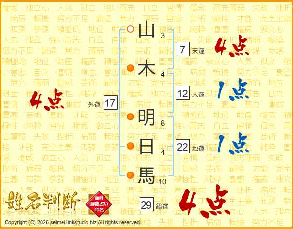 山木明日馬さんの総運は29画の4点!