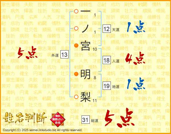 一ノ宮明梨さんの総運は31画の5点!