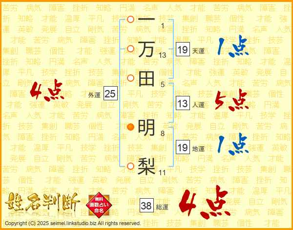 一万田明梨さんの総運は38画の4点!