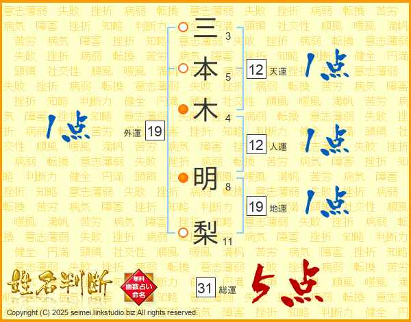 三本木明梨さんの総運は31画の5点!