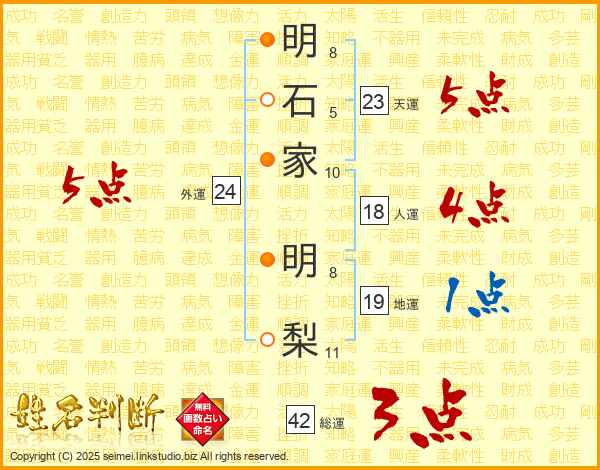 明(8画)石(5画)家(10画) 明(8画)梨(11画)