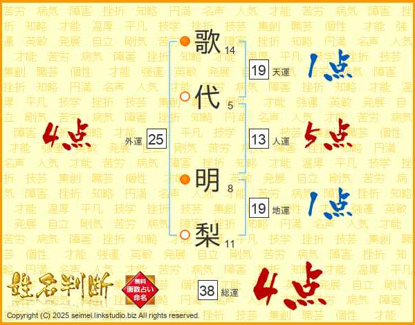 歌代明梨さんの総運は38画の4点!