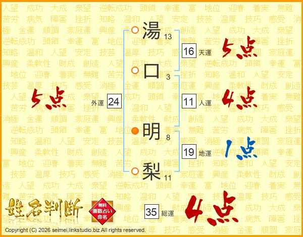 湯口明梨さんの総運は35画の4点!