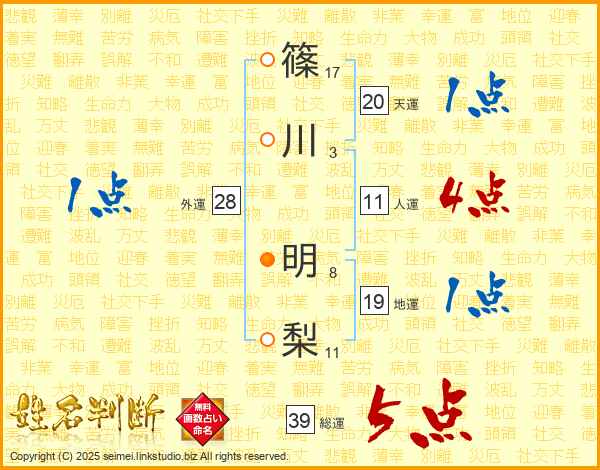 篠川明梨さんの総運は39画の5点!