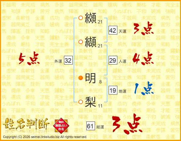 纐纈明梨さんの外運は32画の5点!